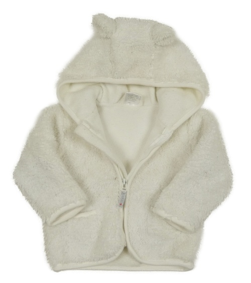 Bílá chlupatá zateplená propínací mikina s kapucí s oušky