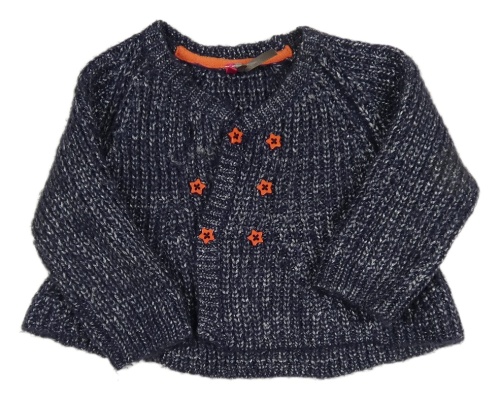 Tmavomodro-stříbrný melírovaný žebrovaný propínací svetr ORCHESTRA