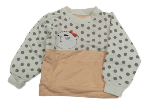 Bílo-meruňková mikina s puntíky a kočičkou a kapsou