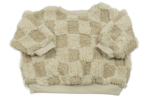 Světlebéžovo-béžová kostkovaná huňatá podšitá oversize mikina Next