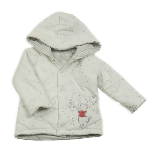 • Bílo-šedá oboustranná zateplená propínací mikina s Medvídkem Pú a kapucí