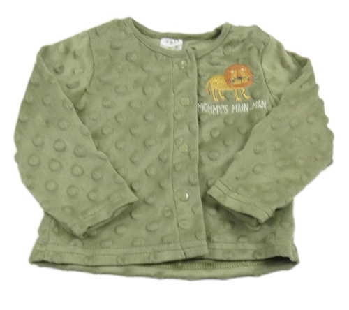 Khaki sametová propínací mikina s bambulkami