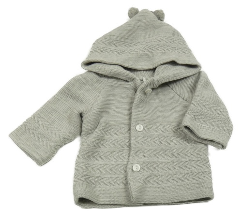 Šedý propínací svetr se vzorem a kapucí