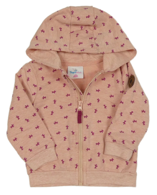 Růžová melírovaná propínací mikina s koňmi a kapucí Topomini
