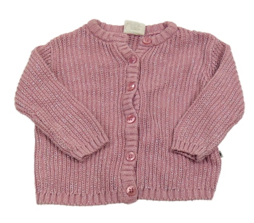 Růžový třpytivý propínací svetr