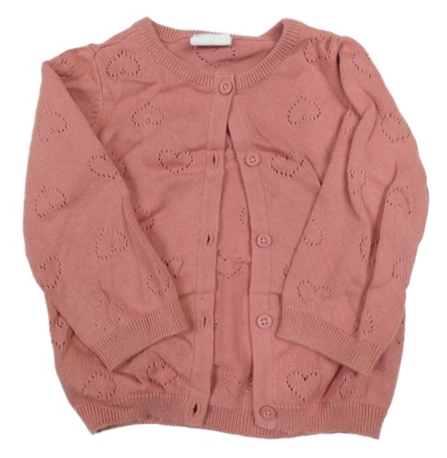 Starorůžový propínací svetr s perforovanými srdíčky F&F