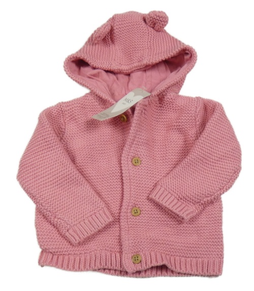 Nové - růžový propínací podšitý svetr s kapucí s oušky M&S