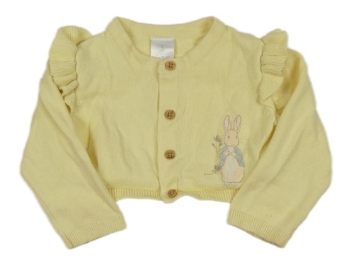 Žluté propínací svetrové bolerko s Peter Rabbit a volánky