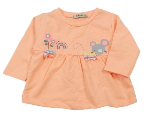 Neonově oranžová tepláková šatová tunika s myškou a duhou