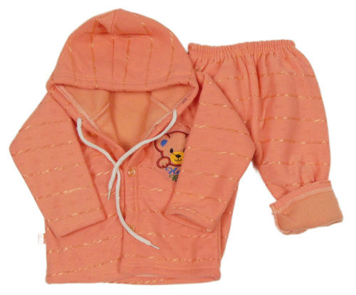 2 set - lososová zateplená propínací mikina s medvědem a kapucí + zateplené tepláky