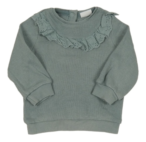 Zelenošedá žebrovaná mikina s madeirovým volánkem F&F