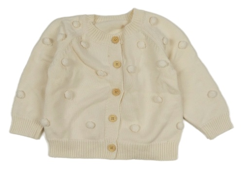 Smetanový propínací svetr s bambulkami