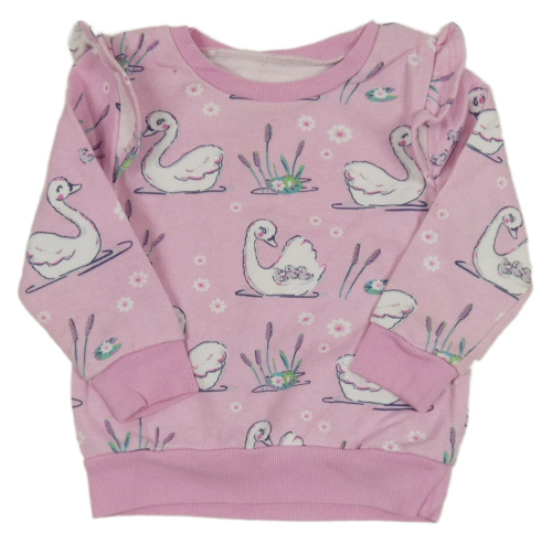 Růžová květovaná mikina s labutěmi a volánky Dunnes