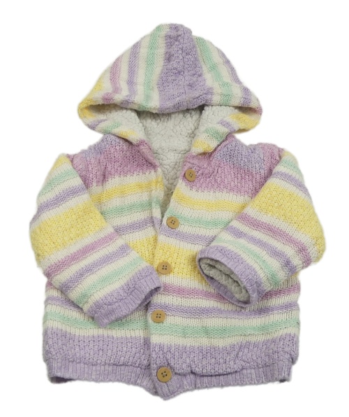 Barevný pruhovaný propínací zateplený svetr s kapucí Nutmeg