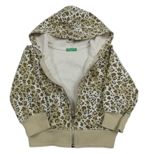 Světlekhaki-bílá vzorovaná propínací mikina s kapucí Benetton
