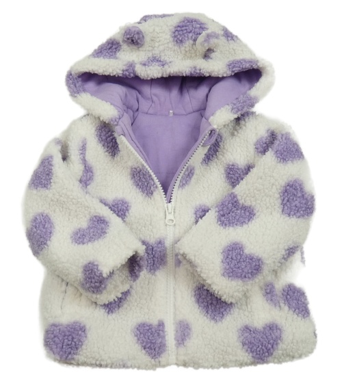 Bílo-fialová huňatá podšitá propínací mikina se srdíčky a kapucí Tu
