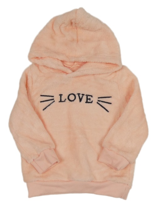 Broskvová chlupatá mikina s nápisem a kapucí