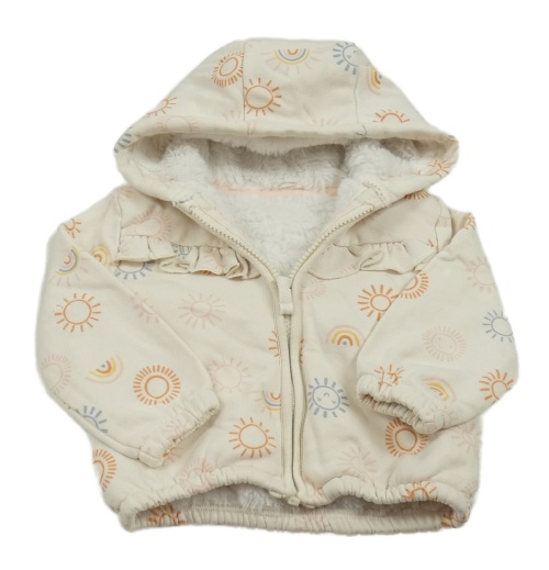 Bílá zateplená propínací mikina se sluníčky a kapucí Nutmeg