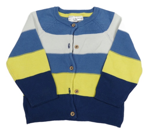 Modro-bílo-žlutý pruhovaný propínací svetr Ergee