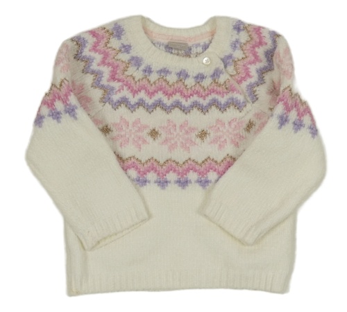 Bílo-lila-růžový žinylkový svetr s norským vzorem