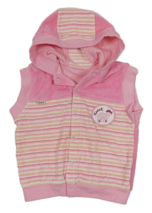 Světlerůžovo-bílo-žlutá pruhovaná sametová mikinová vesta s kapucí