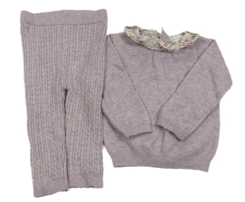 2set - Lila melírovaný svetr s límečkem + vzorované pletené legíny Primark