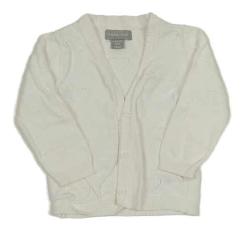 Bílý propínací svetr s perforovanými srdíčky Primark