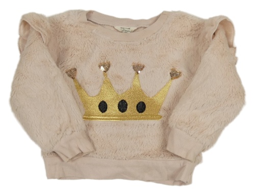Pudrová chlupatá mikina s korunou s flitry a volánky River Island