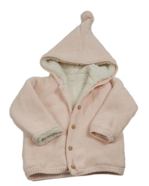 Růžový propínací zateplený svetr s kapucí s kapucí s bambulí Matalan