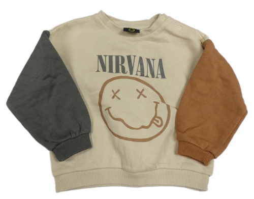 • Světlebéžovo-hnědo-tmavošedá oversize mikina se smajlíkem a nápisem