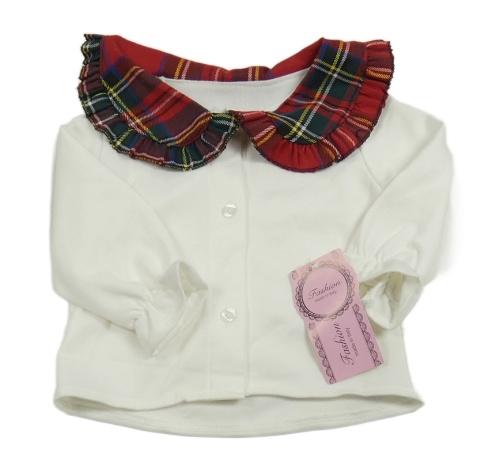 Nové - Bílá propínací mikina s kostkovaným límečkem