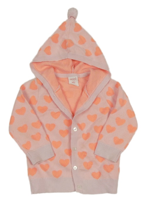Růžový propínací svetr se srdíčky a kapucí Seed