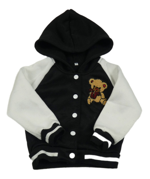 Černo-bílá baseballová mikina s medvědem a kapucí