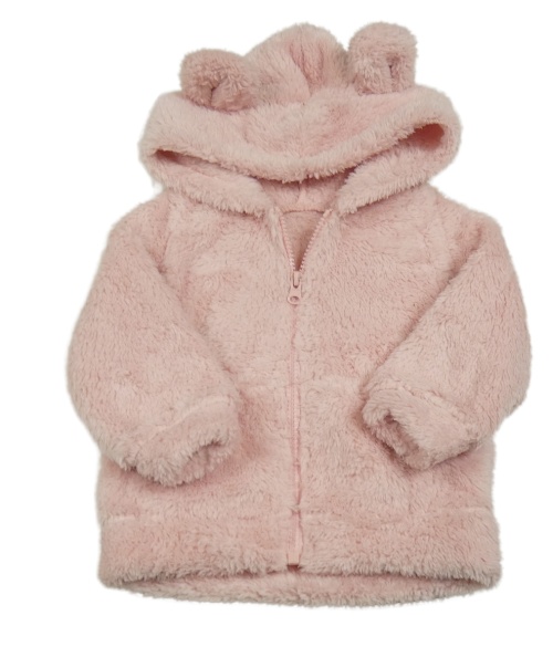 Růžová chlupatá propínací mikina s kapucí s oušky