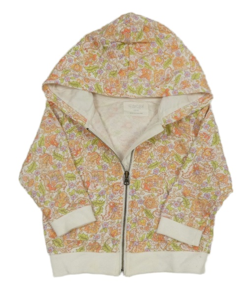 Smetanová propínací mikina s kytičkami a kapucí Dirkje