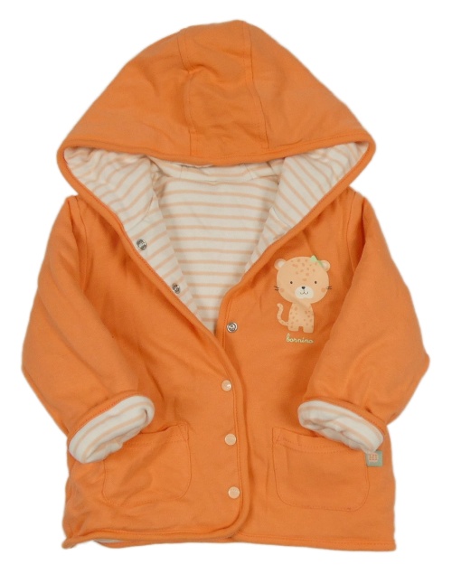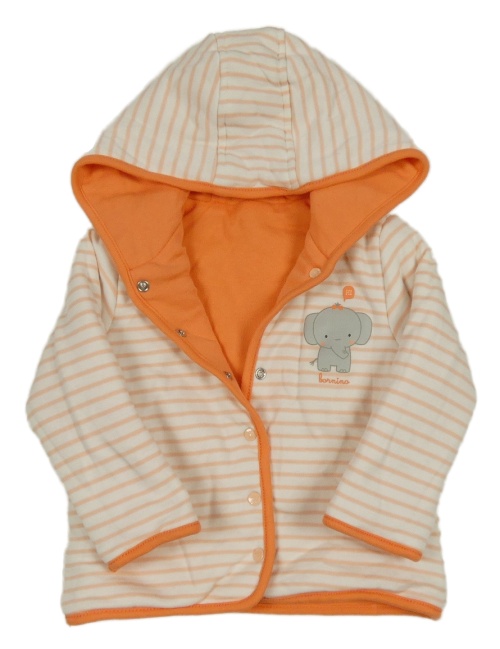 Bílo-oranžová pruhovaná propínací zateplená oboustranná mikina se slonem a kapucí