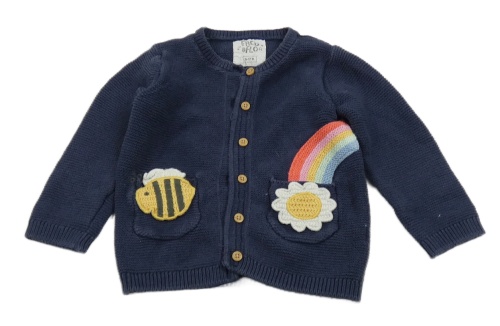 Tmavomodrý propínací svetr s duhou a včelkou F&F