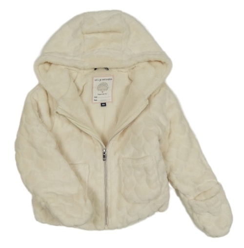 Smetanová plyšová propínací bunda se srdíčky a kapucí C&A