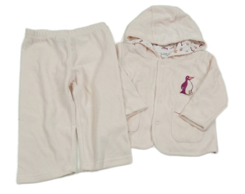• 2Set - Světlerůžová sametová propínací podšitá mikina s tučňáčkem a kapucí + tepláky impidimpi