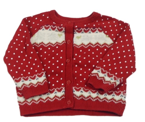 Červeno-smetanový puntíkatý propínací svetr se vzorem Mothercare