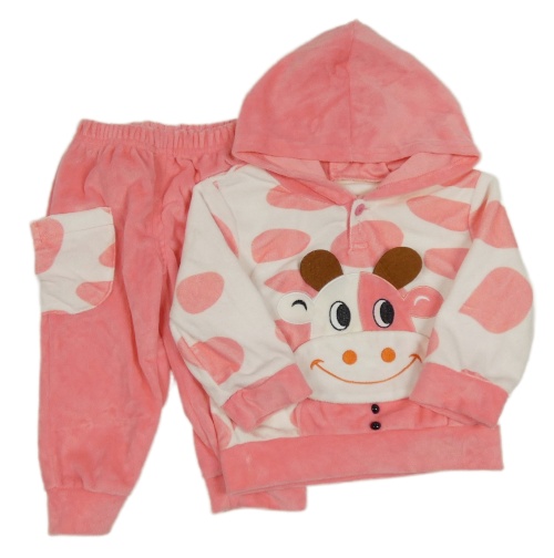 2set - Růžovo-bílá plyšová mikina s krávou a kapucí + tepláky
