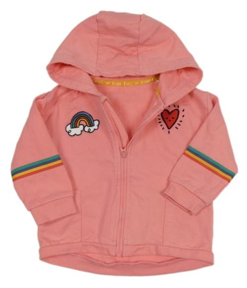 Růžová propínací mikina s nášivkami a kapucí Miniclub