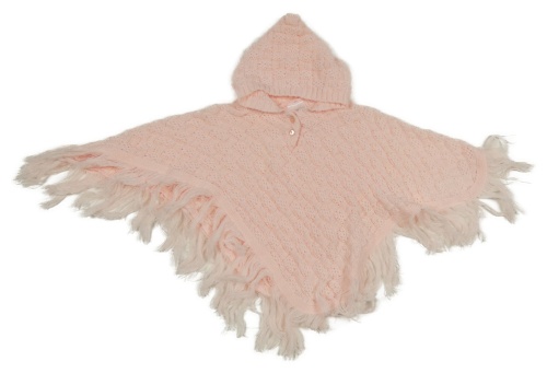 Růžové svetrové pončo s třásněmi a kapucí Babytown