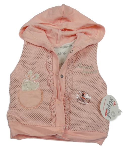 Nové - Broskvová bavlněná zateplená vesta se zajíčkem a kapucí Hippil