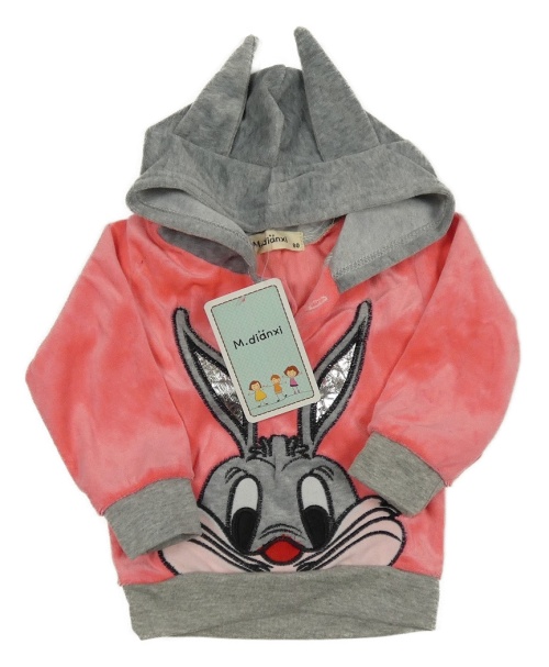 Nové - Světlerůžovo-šedá sametová mikina s Bugs Bunnym a kapucí