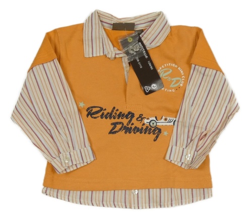 Nové - oranžová tepláková vesta s formulí a nápisy a pruhovanou košilí