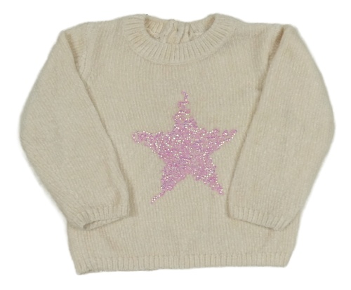 Smetanový žinylkový svetr s hvězdou z flitrů in extenso