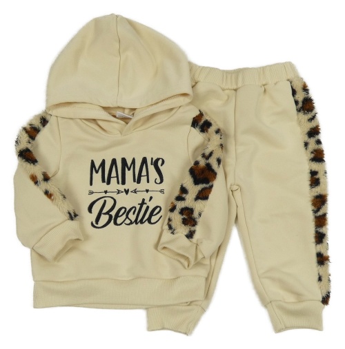 2set - Béžová mikina s nápisem a kapucí + tepláky