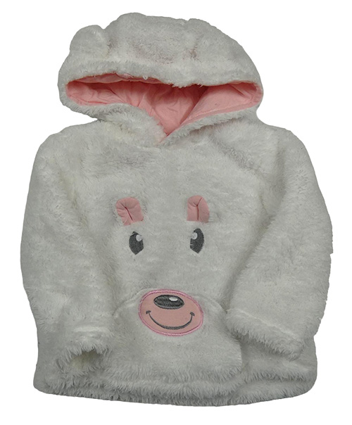 Bílá chlupatá mikina s medvědem a kapucí Ergee