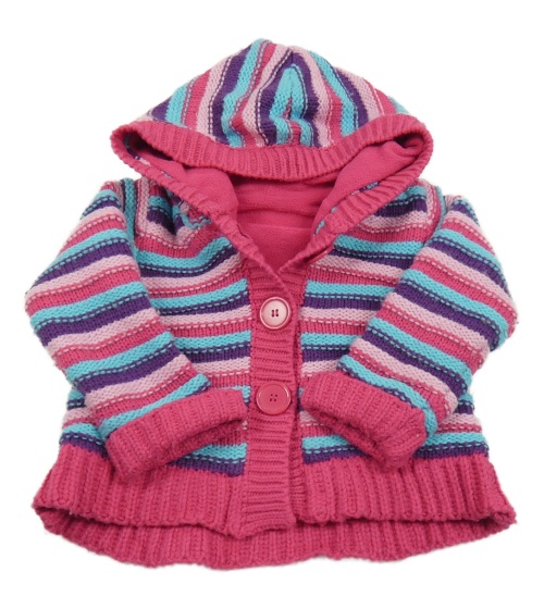 Růžovo-modro-fialový pletený propínací zateplený svetr s kapucí George